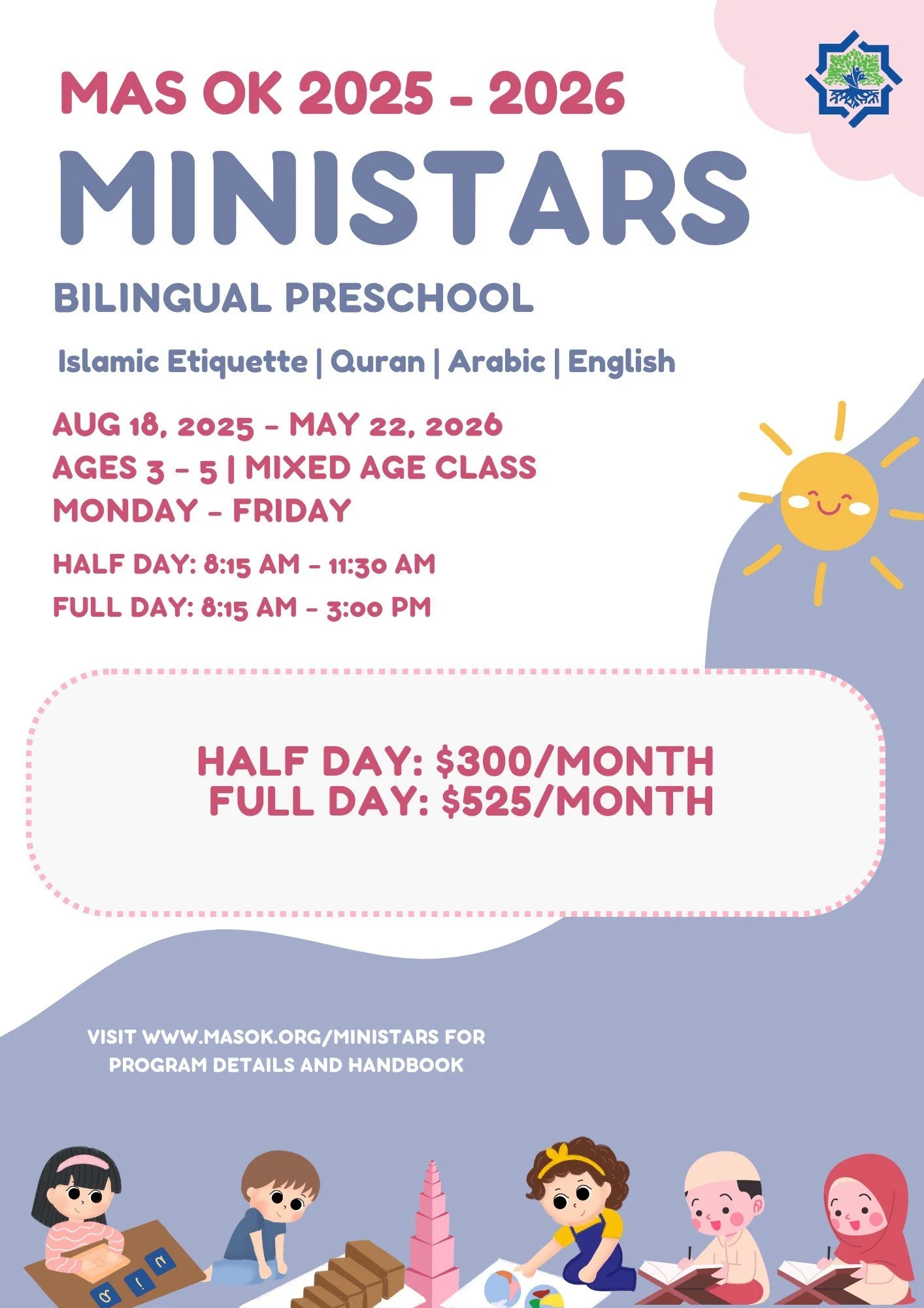 Designed for children 3 - 6 years old. Ministars has both a half day program as well as a full day program 5 days a week. Our goal is to interactively teach kids leadership, social skills, and Islamic values.